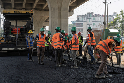 11月8日,随着第一车沥青混合料缓缓铺撒在路基上,达阿高速项目地面道路下面层沥青摊铺施工正式开始,标志着项目地面道路工程建设取得了阶段性成果,项目正式进入地面道路沥青层施工阶段。此次施工是达阿高速项目由2车道升级为4车道地面升级工程的首段摊铺,采用机械化摊铺,施工机械设备齐全,人员配备到位,沥青摊铺效果符合预期,该段工程长约14km。