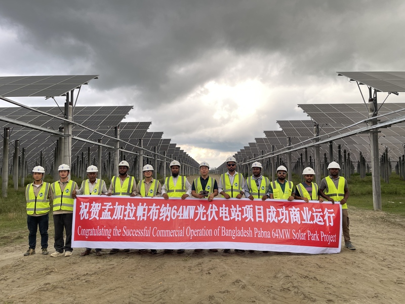 The Pabna solar park project is located in Pabna District within Rajshahi Division in northern Bangladesh, 80 kilometers from the capital Dhaka, with Padma River situated 1.5 kilometers south of the project site. Occupying approximately 13.7 hectares, the project comprises 11 photovoltaic arrays and is expected to provide clean electricity to approximately 60,000 households annually, equivalent to saving 38,000 tons of standard coal and reducing nearly 100,000 tons of carbon dioxide emissions per year. This will provide strong support for Bangladesh in enhancing green energy supply capacity, optimizing energy mix, and advancing energy transition.